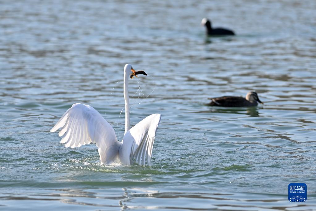 新華全媒+丨珍稀鳥(niǎo)類(lèi)汾河過(guò)冬