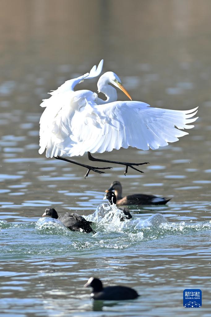 新華全媒+丨珍稀鳥(niǎo)類(lèi)汾河過(guò)冬