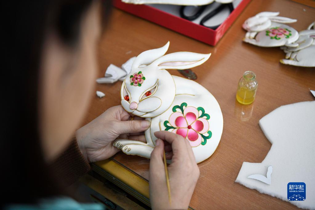 臘月里,河北省豐寧滿(mǎn)族自治縣布糊畫(huà)手工藝人以兔為主題,制作憨態(tài)可掬、萌味十足的兔年主題布糊畫(huà),喜迎新春佳節。布糊畫(huà)是國家級非物質(zhì)文化遺產(chǎn),以綾羅綢緞等面料為主,在滿(mǎn)族傳統工藝“補花”的基礎上,取繪畫(huà)、浮雕、堆繡、剪紙、裱糊、布貼畫(huà)等傳統工藝精華結為一體,呈現出浮雕立體的效果。