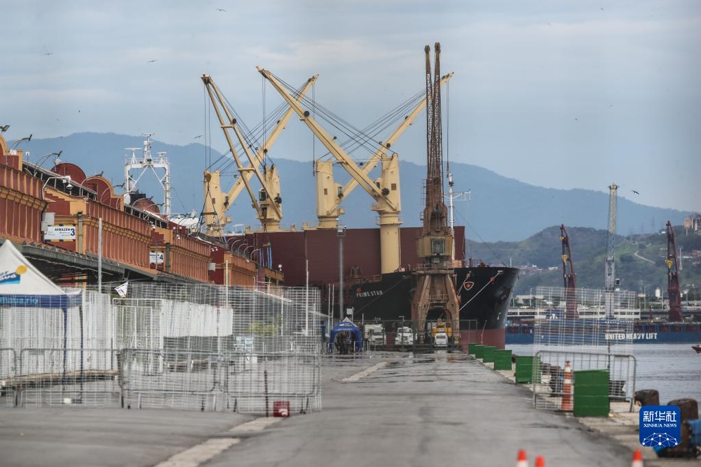 這是1月4日在巴西里約熱內盧瓜納巴拉灣拍攝的集裝箱碼頭。