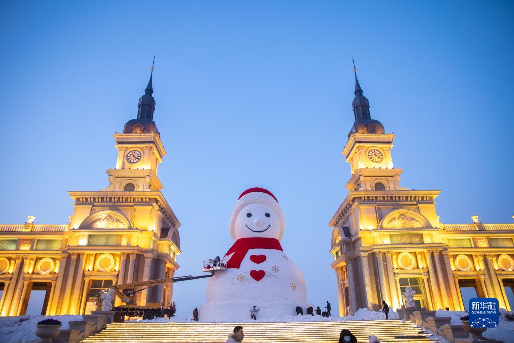 哈爾濱“超治愈”大雪人“回歸”松花江畔
