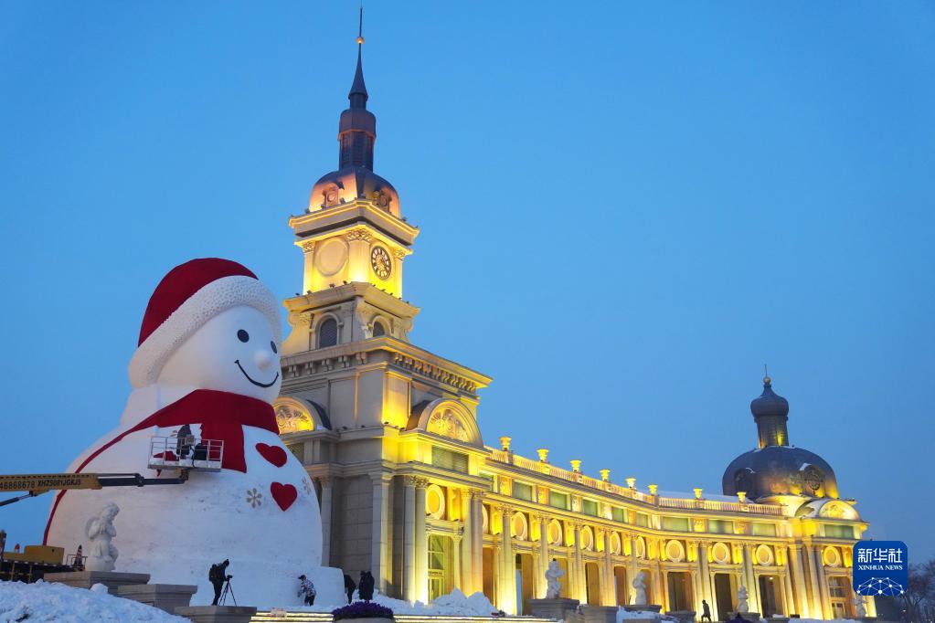 哈爾濱“超治愈”大雪人“回歸”松花江畔