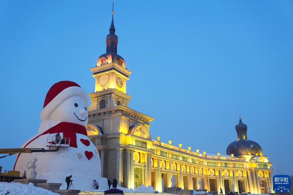 哈爾濱“超治愈”大雪人“回歸”松花江畔