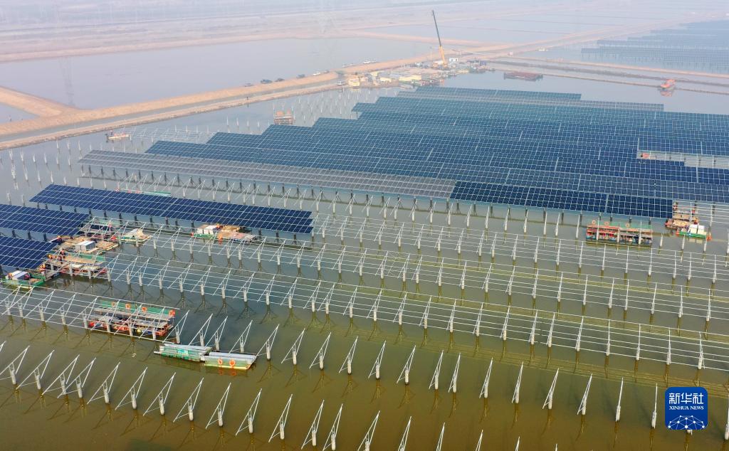 1月5日拍攝的華電海晶光伏項目B標段現場(chǎng)(無(wú)人機照片)。
