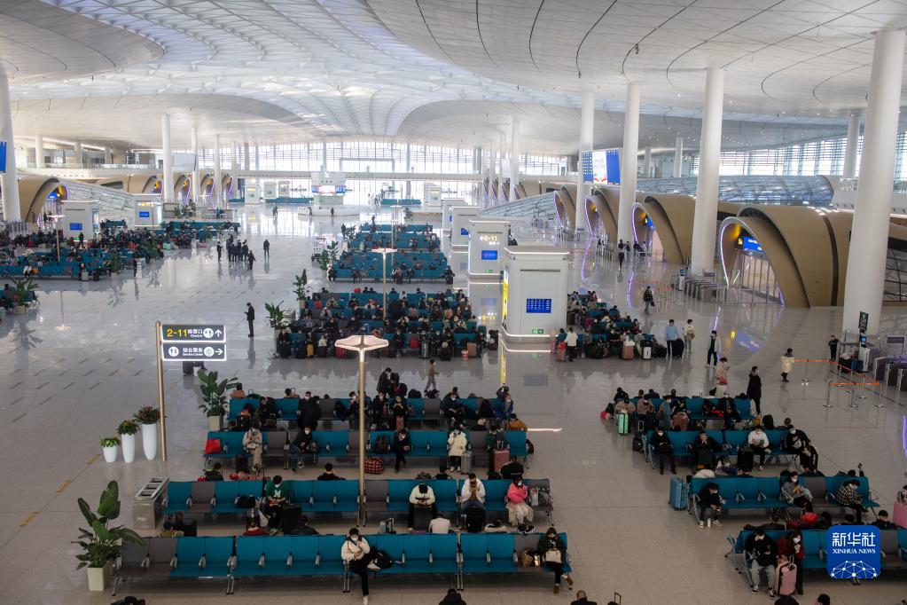 1月6日,旅客在杭州西站候車(chē)大廳內候車(chē)。