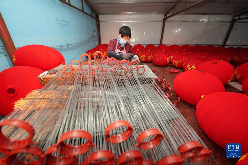 春節臨近,河北省沙河市十里亭鎮曹章村燈籠制作工坊的工人忙著(zhù)趕制大紅燈籠,供應節日市場(chǎng)。曹章村是遠近聞名的“燈籠制作專(zhuān)業(yè)村”,燈籠生產(chǎn)成為當地農民增收的重要途徑。