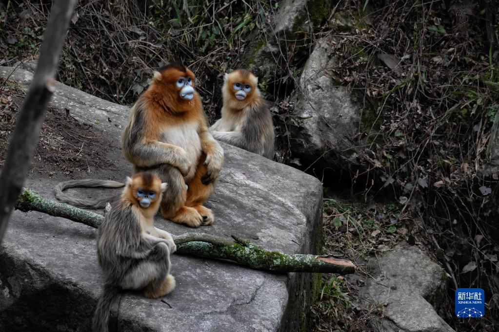 這是在大熊貓國家公園甘肅省片區裕河園區拍攝的川金絲猴(1月4日攝)。