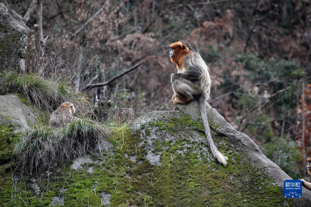 這是在大熊貓國家公園甘肅省片區裕河園區拍攝的川金絲猴(1月4日攝)。