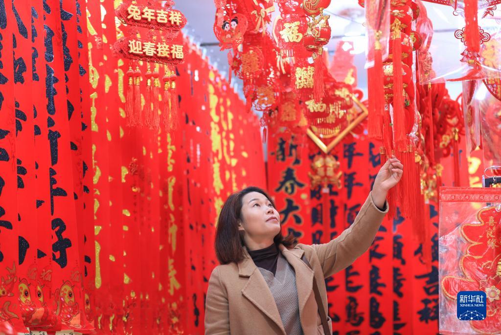 1月6日,市民在貴州省從江縣一處年貨市場(chǎng)選購新春飾品。