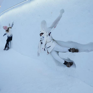 近日,許多游客來(lái)到哈爾濱冰雪大世界,在一面有著(zhù)數十個(gè)不同造型人形凹槽的雪墻前“打卡”留影。