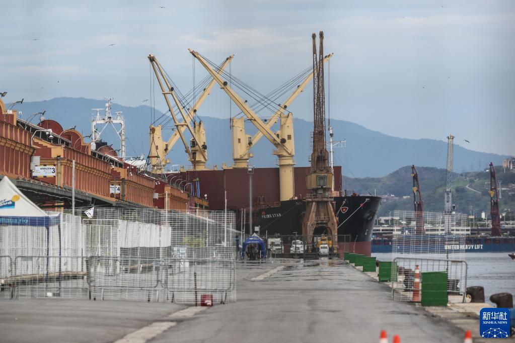 這是1月4日在巴西里約熱內盧瓜納巴拉灣拍攝的集裝箱碼頭。