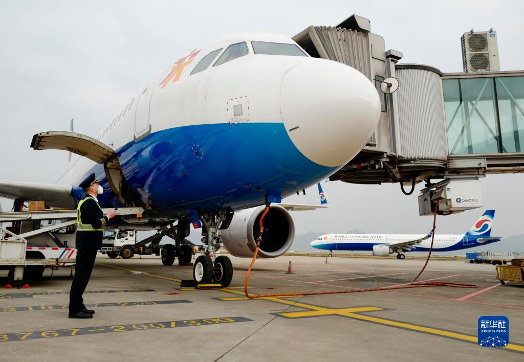1月6日,重慶江北國際機場(chǎng)的停機坪上,機長(cháng)菅士博對客機進(jìn)行起飛前的繞機檢查。
