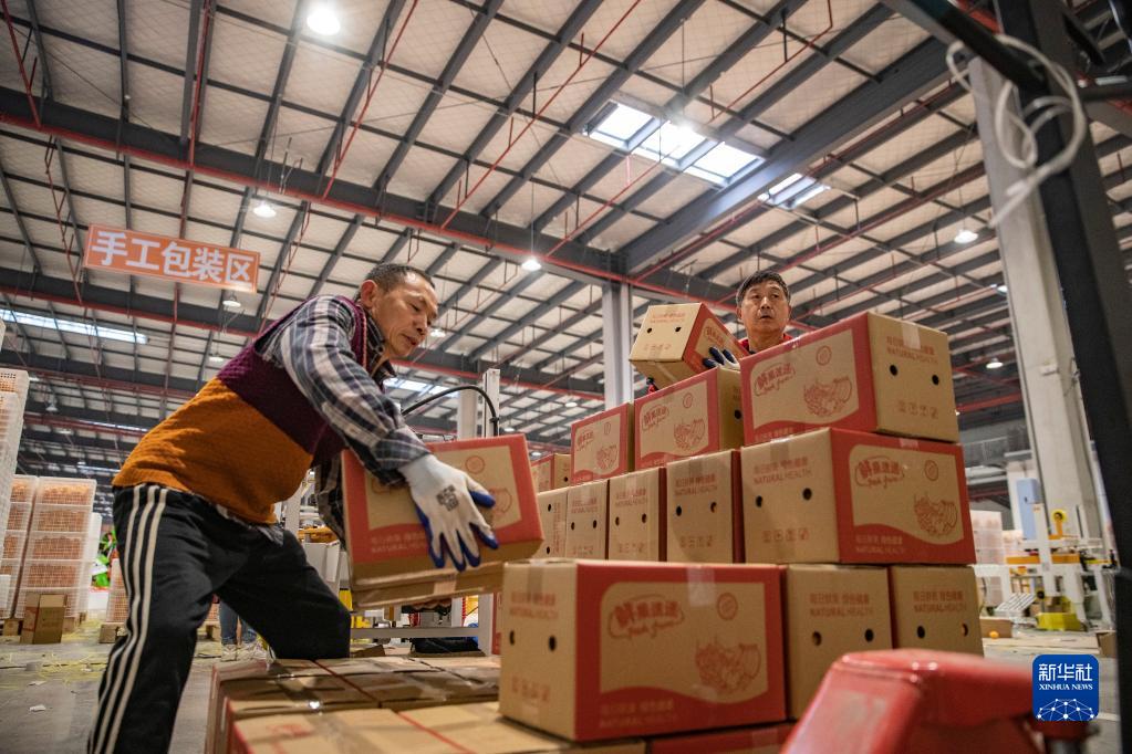 1月6日,在中國三峽柑橘(奉節臍橙)交易中心,工人搬運即將發(fā)貨的臍橙。