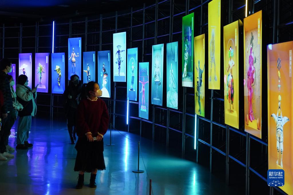 1月7日,觀(guān)眾在“2022濟南國際雙年展”上參觀(guān)視頻藝術(shù)作品《神話(huà)》。