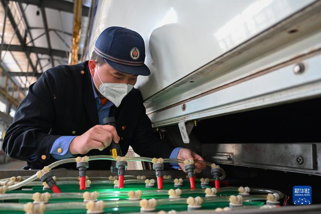 春運期間,在中國鐵路南昌局集團有限公司福州車(chē)輛段和動(dòng)車(chē)段內,工作人員對綠皮火車(chē)、高鐵動(dòng)車(chē)等多種車(chē)型進(jìn)行檢修、維護?!盎疖?chē)醫生”對列車(chē)進(jìn)行全方位排障,確保春運期間列車(chē)運行安全。