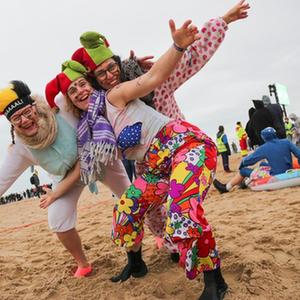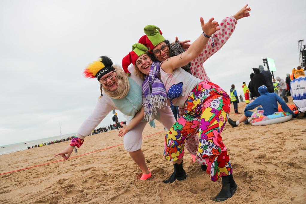 當日,比利時(shí)港口城市奧斯坦德舉行傳統的“跳北海慶新年”活動(dòng),數千參加者身著(zhù)各式服裝跳進(jìn)北海。人們認為冰冷的海水能讓人精神煥發(fā),擁抱健康的一年。
