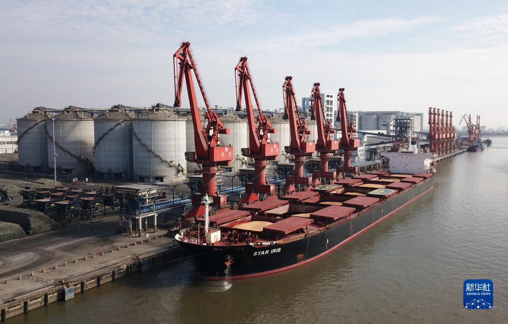 1月7日,載有6.8萬(wàn)噸巴西玉米的貨輪抵達廣東麻涌港。