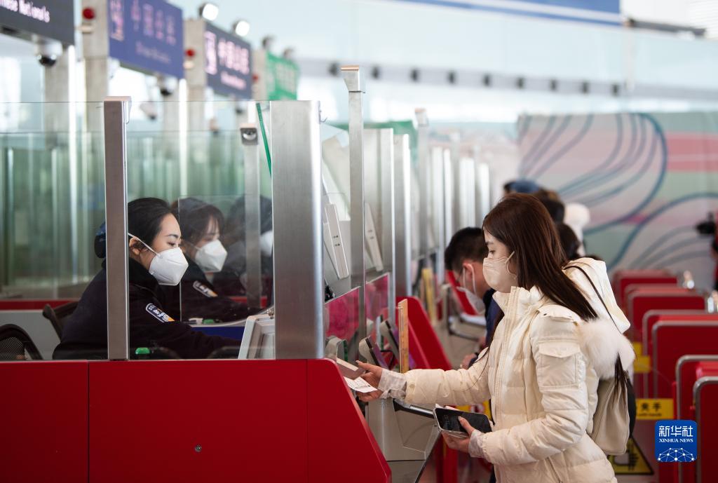 1月8日,入境旅客在首都國際機場(chǎng)T3-E邊檢查驗柜臺辦理入境手續。