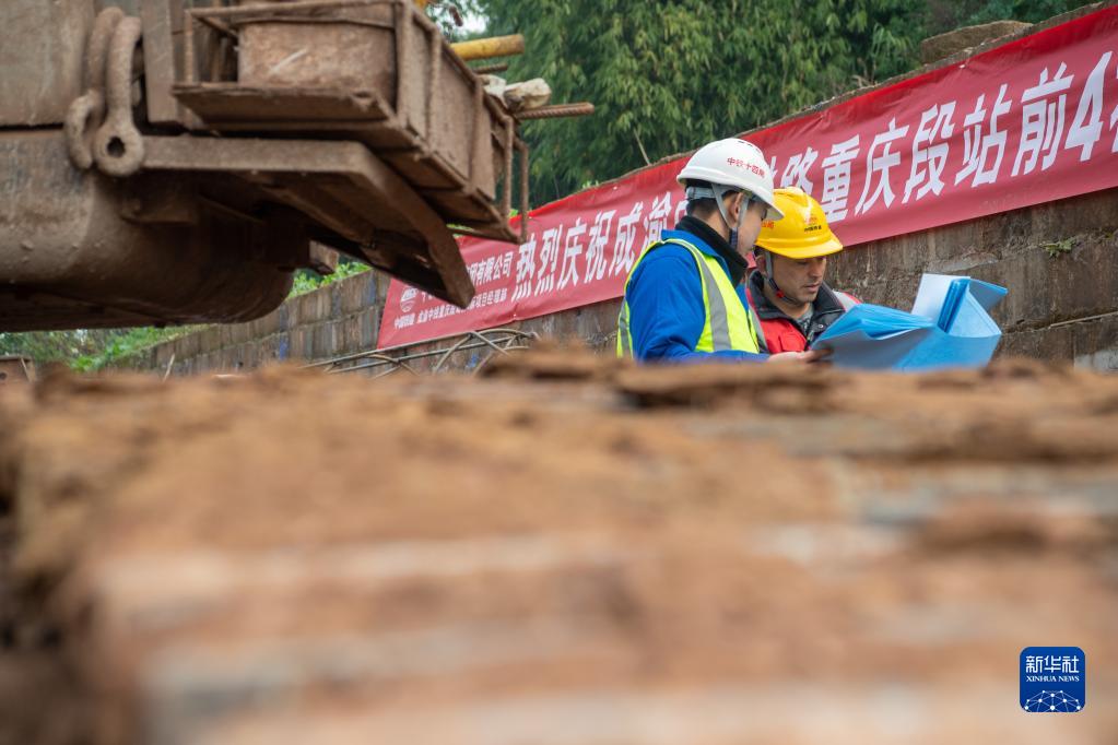 1月8日,工作人員在位于重慶市大足區境內的成渝中線(xiàn)高鐵建設施工現場(chǎng)作業(yè)。