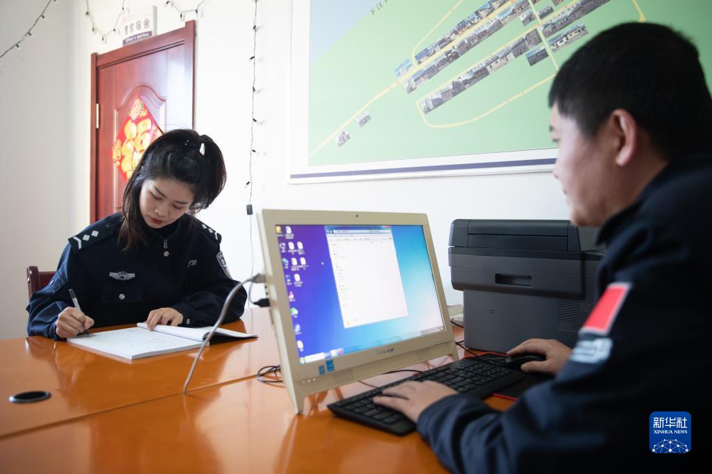 1月8日,史先強和妻子沈欣在洛古河夫妻警務(wù)室里進(jìn)行信息錄入工作。
