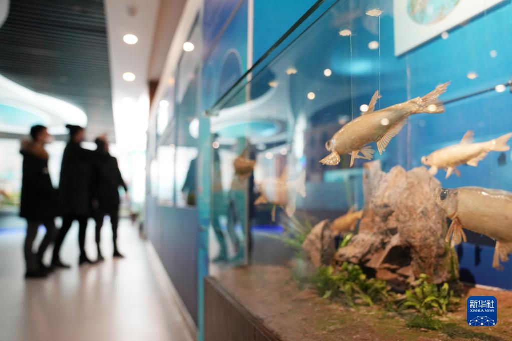 1月9日,參觀(guān)者在撫遠市魚(yú)博館參觀(guān)。