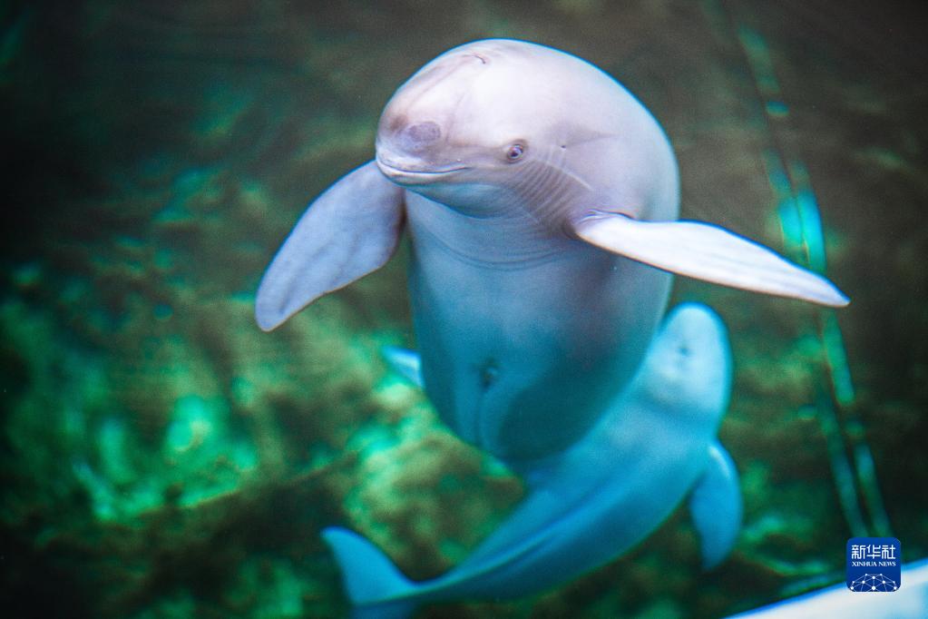 2022年6月29日,江豚媽媽“福久”和小江豚“F9C22”在中國科學(xué)院水生生物研究所白鱀豚館游動(dòng)。在科研人員的監護下,“福久”于6月27日21時(shí)35分左右順利分娩,幼豚編號為“F9C22”,這是人工繁養長(cháng)江江豚取得的新成果。