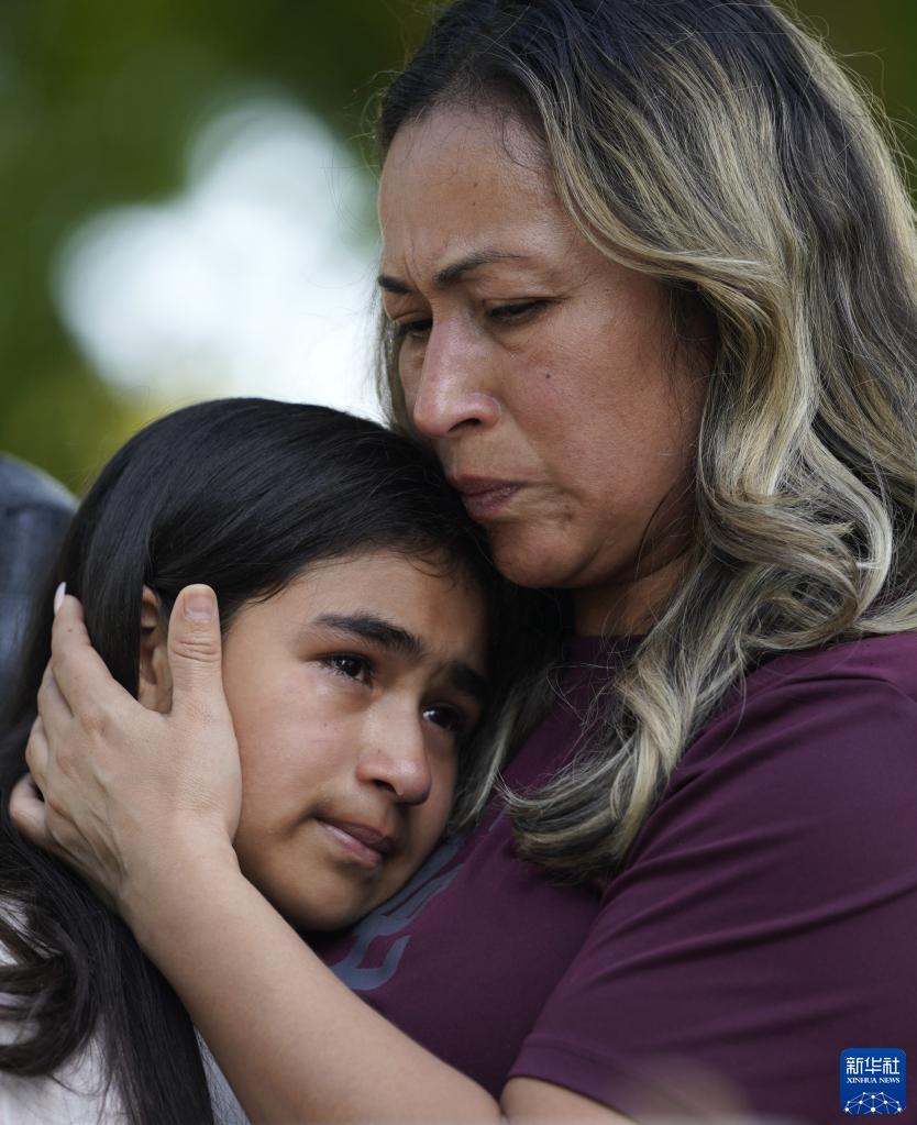 2022年5月26日,人們在美國得克薩斯州南部尤瓦爾迪市哀悼槍擊事件遇害者。尤瓦爾迪市5月24日發(fā)生惡性校園槍擊事件,槍手闖入羅布小學(xué),殺害19名學(xué)生和兩名教師,釀成美國10年來(lái)致死人數最多的校園槍擊事件。