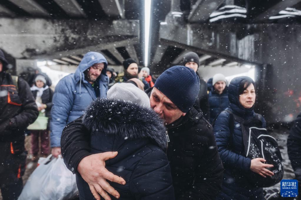 2022年3月8日,一對情侶在烏克蘭伊爾平告別。俄羅斯3月9日啟動(dòng)“安靜模式”,在烏克蘭首都基輔等幾座大城市開(kāi)通人道主義走廊,供平民撤離。