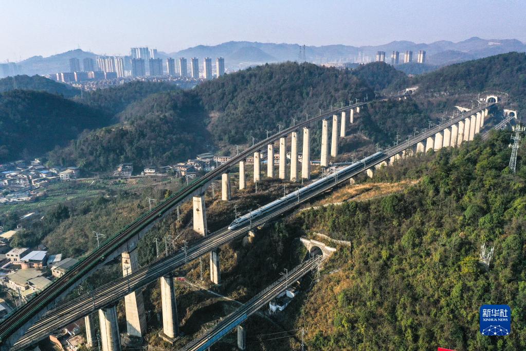 這是鐵路警察王云和謝源日常負責線(xiàn)路安全巡查的鐵路沿線(xiàn)(1月9日攝,無(wú)人機照片)。