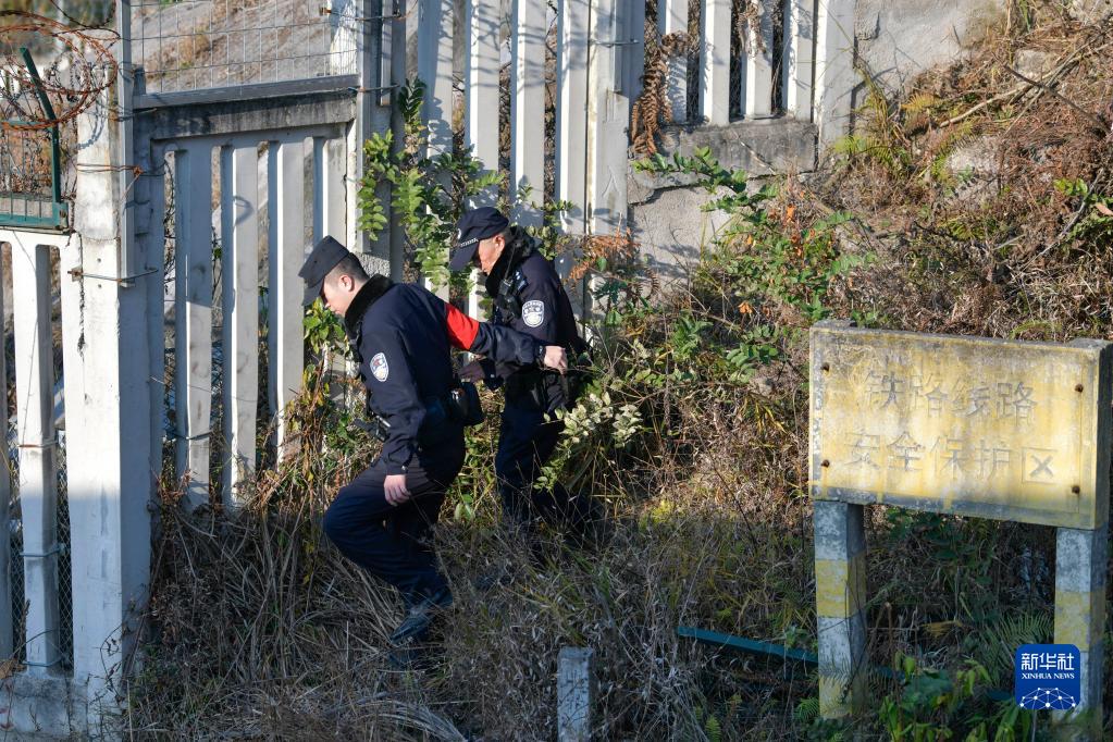 1月8日,鐵路警察王云(右)和謝源在鐵路沿線(xiàn)進(jìn)行線(xiàn)路安全巡查。
