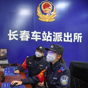 春運期間,長(cháng)春站客流持續增加。朱榮超和同事認真執勤,守護旅客出行平安。