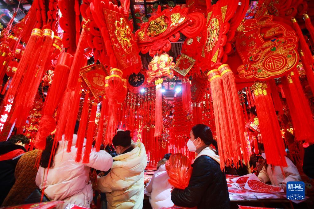 1月9日,在江蘇省揚州市一處小商品市場(chǎng),居民在選購節慶飾品。新華社發(fā)(孟德龍 攝)