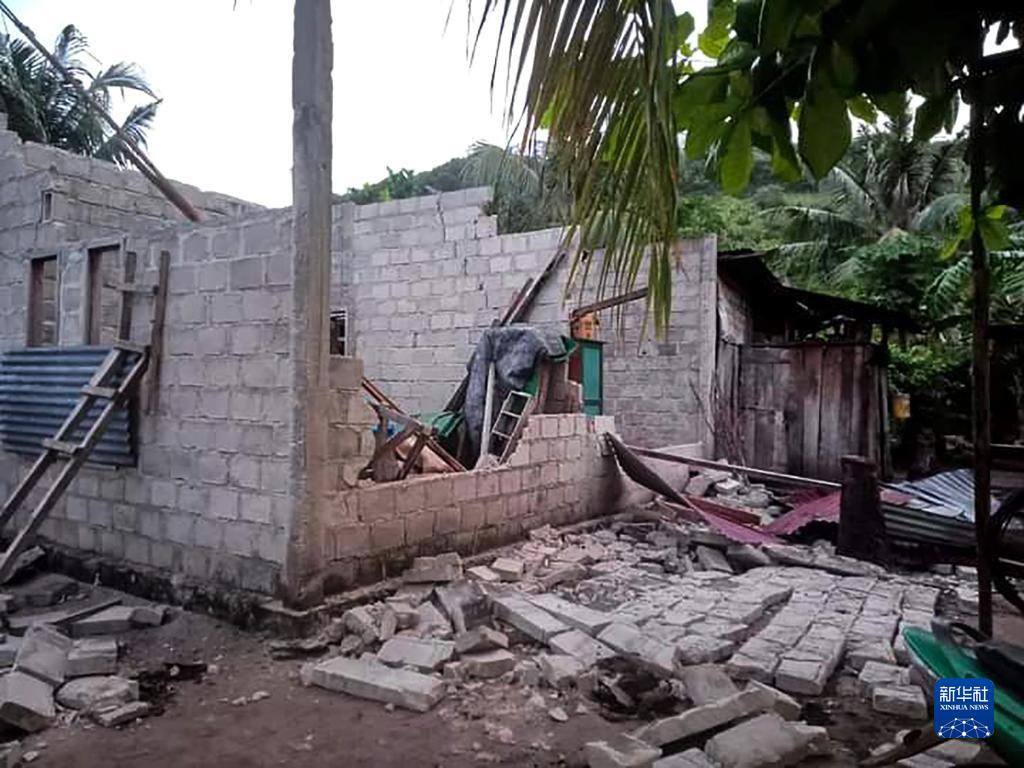 這是1月10日在印度尼西亞馬魯古省拍攝的在地震中受損的房屋。