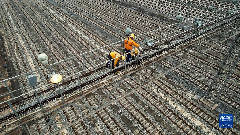 春運期間,中國鐵路南寧局集團有限公司南寧動(dòng)車(chē)所的接觸網(wǎng)工們要定期登上24米高、120米長(cháng)的燈橋,對列車(chē)運行徑路的燈塔、燈橋、電力鋼柱開(kāi)展專(zhuān)項排查檢修,確保亮燈率在80%以上,保障運行高峰期列車(chē)平安出行。