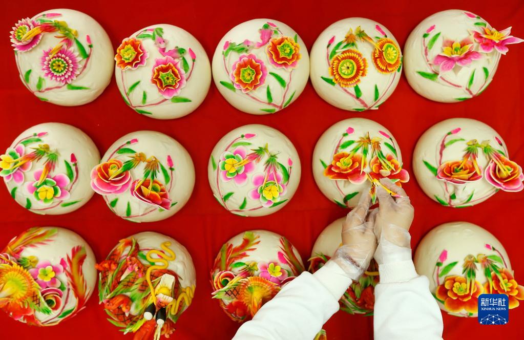 春節臨近,山東省青島市即墨區的農民趕制花饃等傳統面食,供應節日市場(chǎng)。即墨當地有過(guò)年做花饃的習俗,寓意新的一年日子紅紅火火,生活蒸蒸日上。