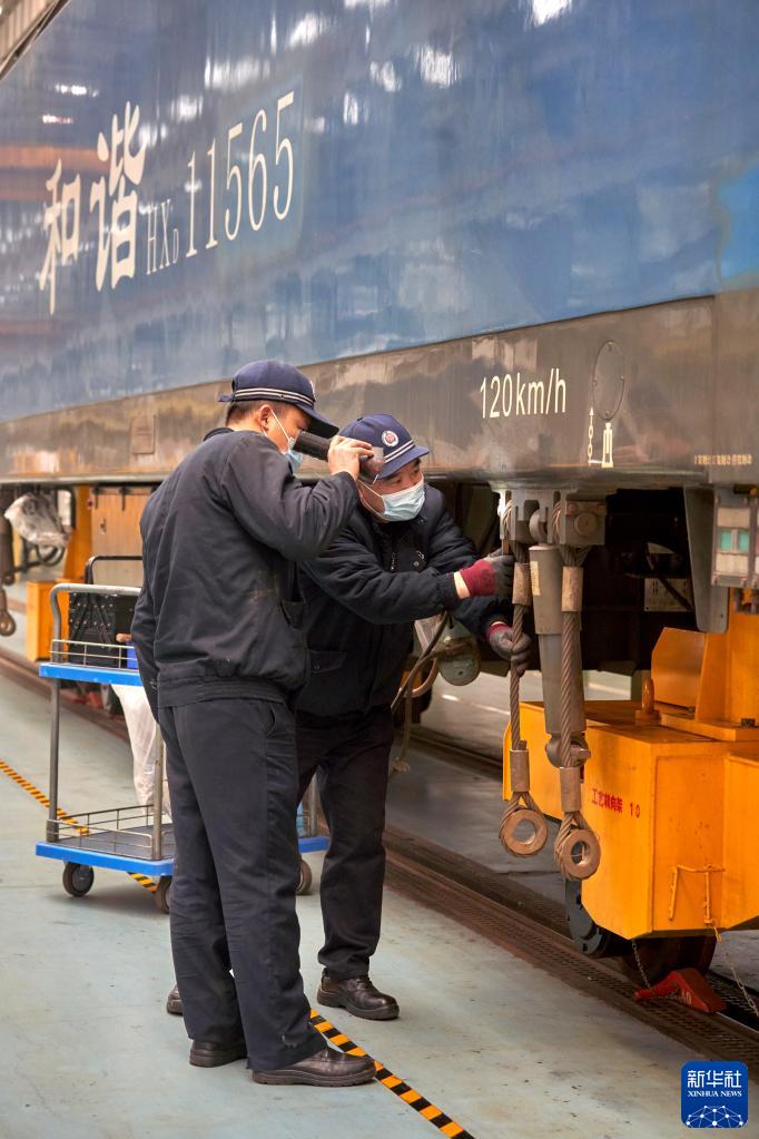 火車(chē)跑得快,全靠車(chē)頭帶。為確保春運期間和諧型大功率機車(chē)和CR200J復興號動(dòng)車(chē)組動(dòng)力車(chē)按時(shí)交付,滿(mǎn)足中歐班列、新成昆鐵路等鐵路線(xiàn)上的列車(chē)運行需求,成都機務(wù)段檢修人員堅守崗位,為春運保駕護航。