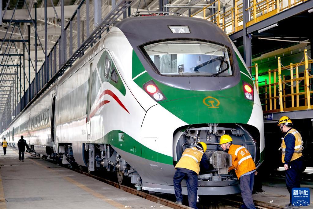 火車(chē)跑得快,全靠車(chē)頭帶。為確保春運期間和諧型大功率機車(chē)和CR200J復興號動(dòng)車(chē)組動(dòng)力車(chē)按時(shí)交付,滿(mǎn)足中歐班列、新成昆鐵路等鐵路線(xiàn)上的列車(chē)運行需求,成都機務(wù)段檢修人員堅守崗位,為春運保駕護航。