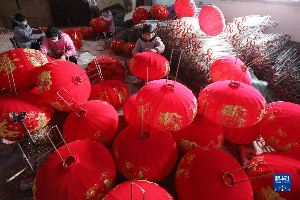 春節臨近,吉祥喜慶的大紅燈籠日益走俏,河南省焦作市溫縣的燈籠作坊內一派紅紅火火的忙碌景象,村民們加緊趕制訂單,供應節日市場(chǎng)。