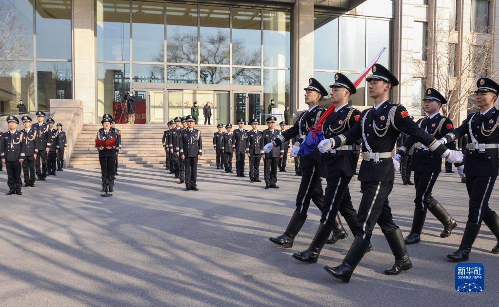 1月10日上午10時(shí),公安部舉行升警旗儀式慶祝第三個(gè)中國人民警察節。部機關(guān)干部代表整齊列隊,向中國人民警察警旗莊重敬禮,齊聲高唱中國人民警察警歌,重溫公安機關(guān)人民警察誓詞。