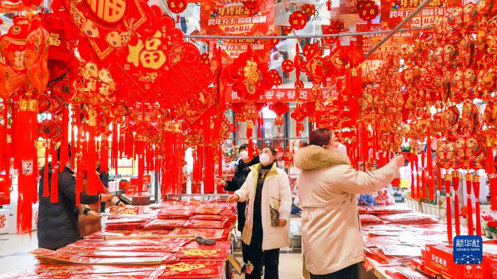 春節臨近,各地年貨市場(chǎng)紅紅火火,人們忙著(zhù)選購年貨,喜迎新春佳節。