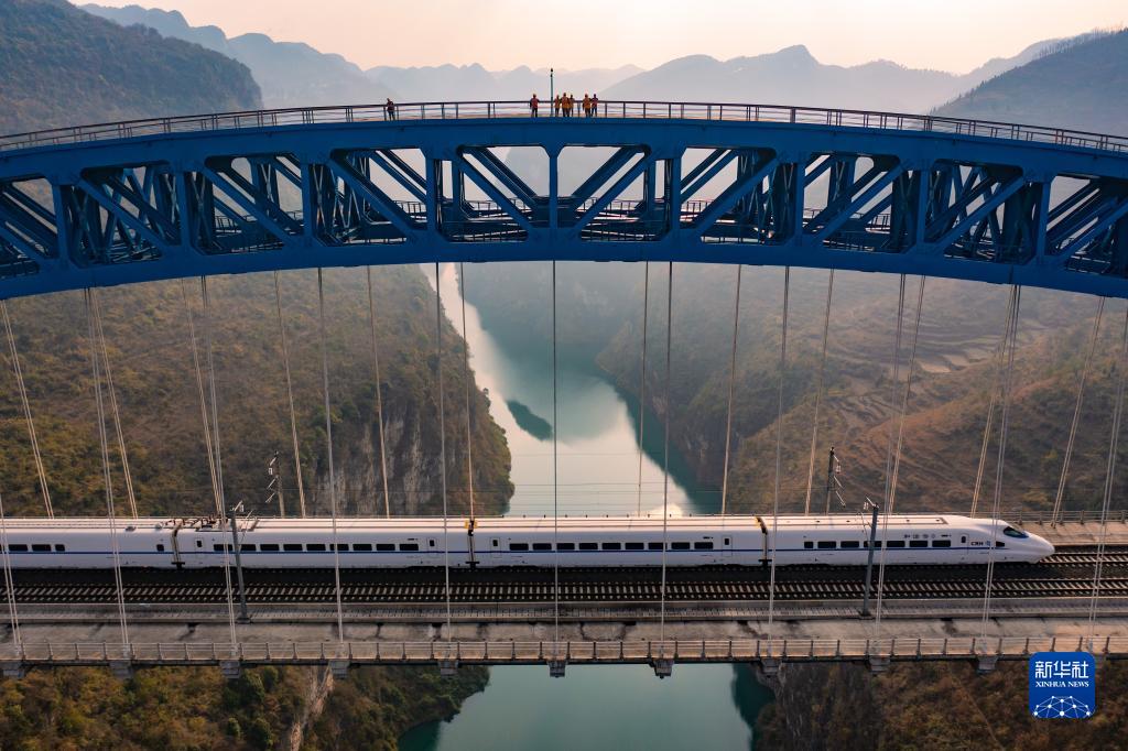 成貴高鐵鴨池河特大橋橫跨貴州省黔西市境內的鴨池河,在地勢險峻的峽谷間,每天約有100多組春運動(dòng)車(chē)穿行經(jīng)過(guò)。在最高處距離河面約277米的大橋上,鐵路職工堅守崗位,嚴格巡檢,對大橋的鋼結構、供電設備、橋梁支座、外包混凝土等進(jìn)行細致檢查,根據列車(chē)運行情況調整軌道線(xiàn)路的幾何尺寸、進(jìn)行鋼軌探傷等作業(yè),全力保障春運期間動(dòng)車(chē)組安全通過(guò)。