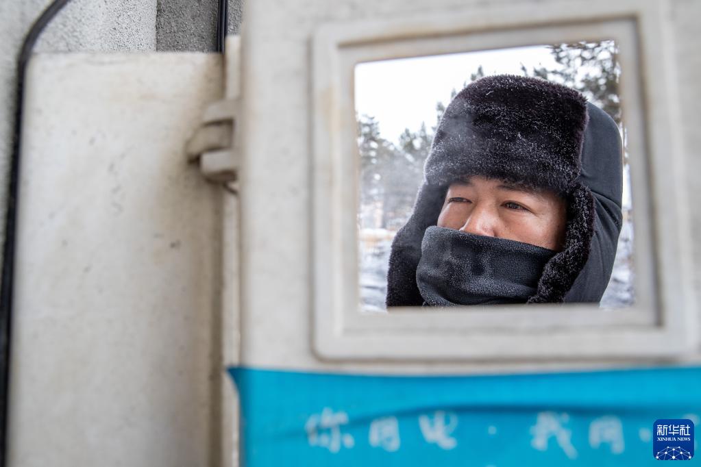 1月9日,在漠河市北極村,線(xiàn)路設備運維人員馬國軍在檢查供電設備。新華社記者 張濤 攝