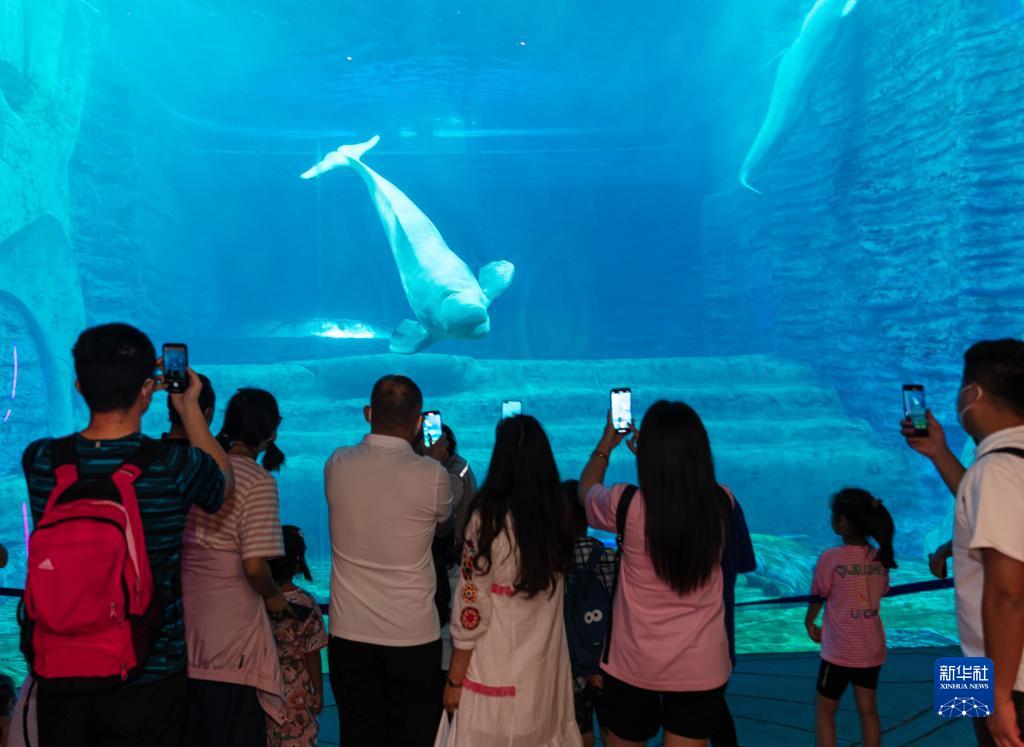 游客在海南三亞亞特蘭蒂斯酒店水族館參觀(guān)游玩(2022年12月30日攝)。