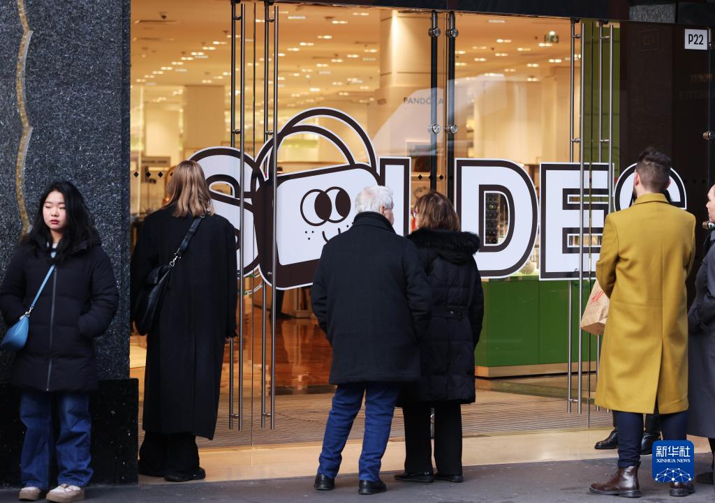 1月11日,人們在法國巴黎老佛爺百貨前等待商店開(kāi)門(mén)。