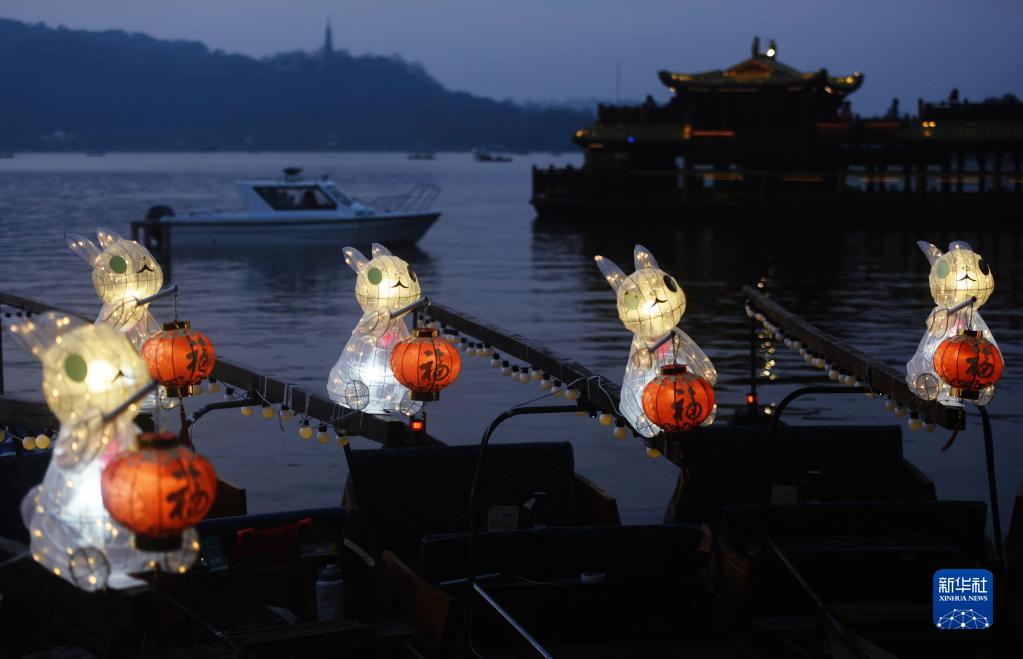 隨著(zhù)農歷癸卯兔年臨近,日前,30艘裝有“玉兔燈”的手劃船集中亮相杭州西湖,供市民游客乘坐、賞燈游玩,熱熱鬧鬧迎接新春佳節。