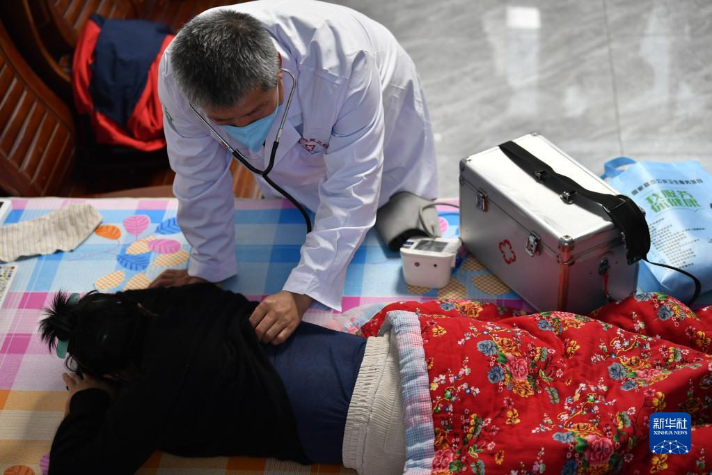 1月11日,河北省唐山市豐南區王打刁村“農村巡診小分隊”村醫孫慶良(上)為村民上門(mén)診療。
