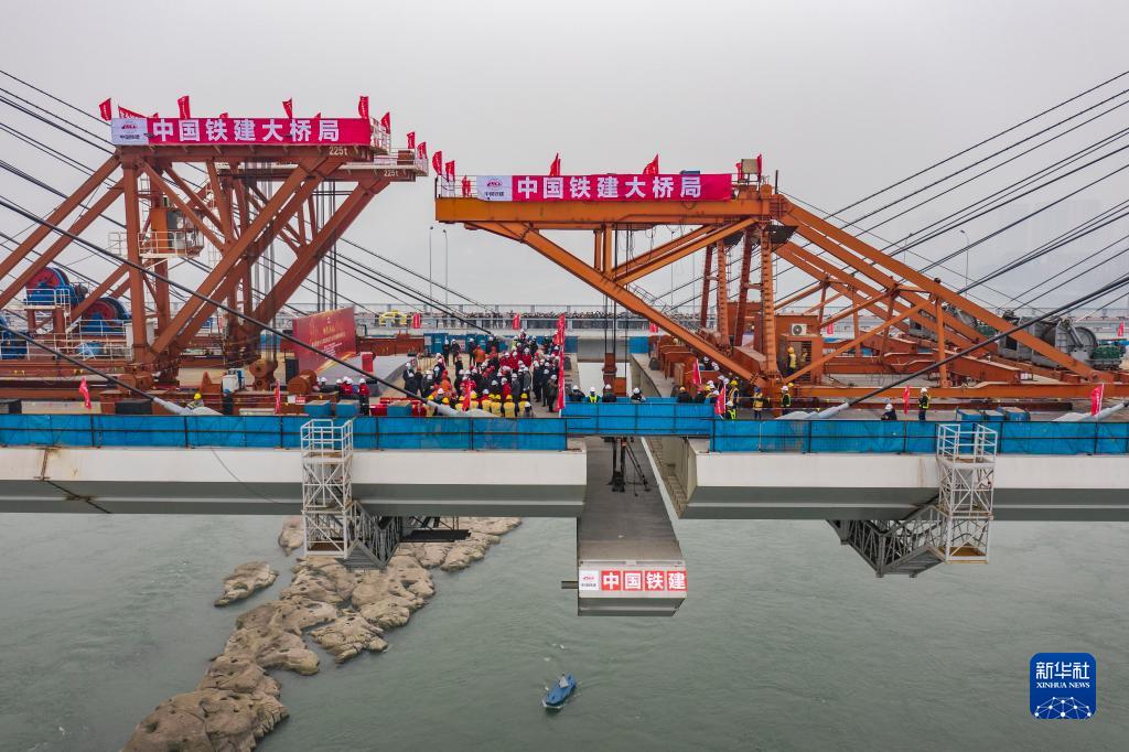 這是李家沱長(cháng)江復線(xiàn)橋合龍施工作業(yè)現場(chǎng)(1月12日攝,無(wú)人機照片)。