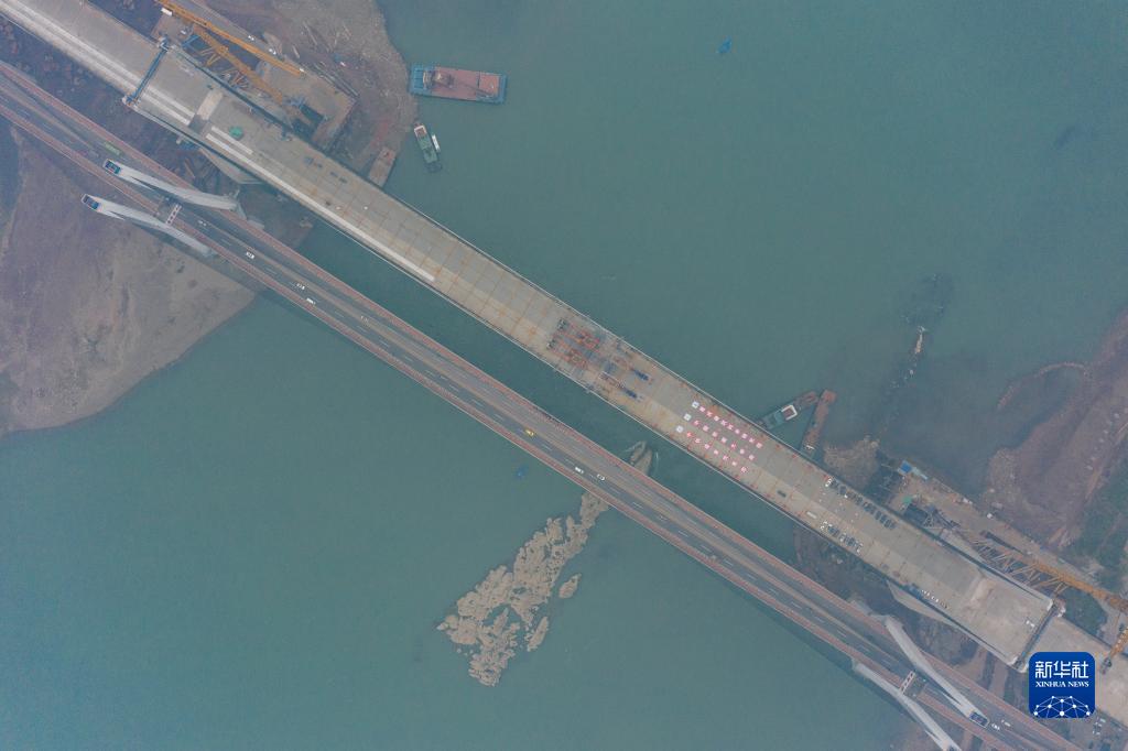 這是李家沱長(cháng)江復線(xiàn)橋(右)合龍施工作業(yè)現場(chǎng)(1月12日攝,無(wú)人機照片)。