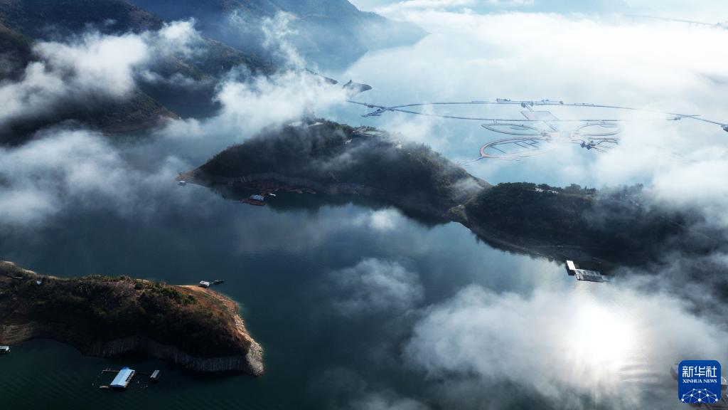 冬日,貴州省羅甸縣紅水河畔山巒起伏,云纏霧繞,景色如畫(huà)。