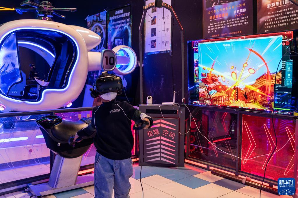在拉薩城關(guān)區萬(wàn)達廣場(chǎng),小朋友在VR體驗館玩VR游戲(1月11日攝)。